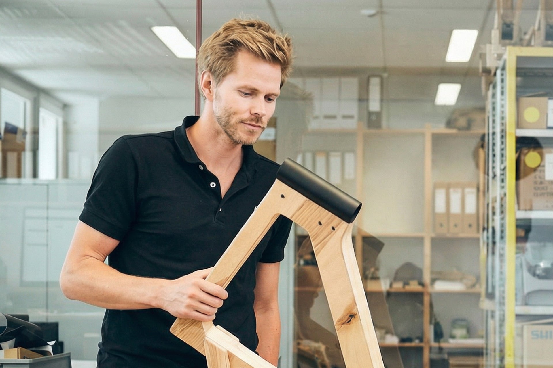 Wir verwenden langsam wachsende, regional verfügbare Hölzer: einen leichten Birkenkern mit einer Außenschicht aus Esche und Nuss. Das gesamte Holz ist PEFC-zertifiziert und stammt aus nachhaltiger Forstwirtschaft